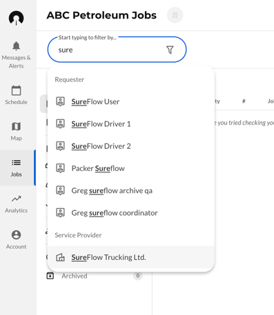 Auto-complete filters help you find jobs more quickly by suggesting relevant filter values as you type.